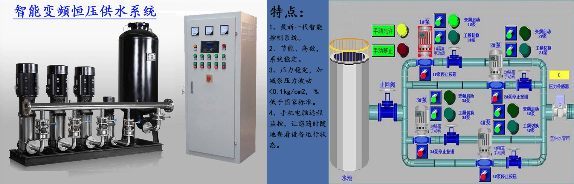 盛禾变频恒压供水系统主要元器件采用ABB、SIEMENS等进口元器件,稳定精度高,压力稳定,波动小于0.1kg/cm2,加减泵压力波动小于0.2kg/cm2......